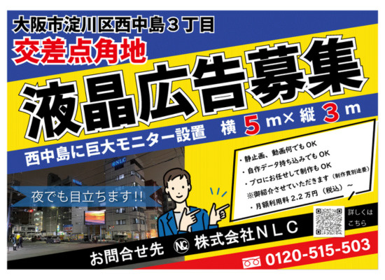 交差点角地で大きいモニターがよく目立ちます!